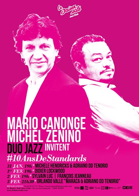 Alors dix ans, ça se fête. Et ce qui se fera sur la scène du Baiser Salé à partir du 31 janvier prochain. Le Festival des Dix Ans ! Quatre jours non-stop durant lesquels les deux musiciens balaieront à nouveau les cartes des standards, accompagnés de quelques amis – et pas des moindre : Michele Hendricks et Adriano Tenorio DD (le 31), Didier Lockwood (le 1er février) et Sylvain Luc et François Jeanneau pour le troisième soir. Et apothéose le 3 février, les standards passent à 21h30, pour une soirée complète en compagnie d’Orlando Valle « Maraca » – Mario joue régulièrement avec le Maraca All Stars ! – et Adriano Tenorio DD pour un parfum de CAB remanié.