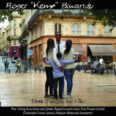 Ce qui a toujours frappé dans le jeu de Roger « Kemp » Biwandu, c’est l’énergie communicatrice qu’il déploie derrière ses fûts. Se rapporter pour cela à ses collaborations avec Sixun, Chic Hot, Ultramarine ou encore Joe Zawinul – belle école ! Une énergie absolument pas antagoniste de la finesse qu’il sait également faire passer lorsque cela est nécessaire. Avec Three (two girls and a boy), qui vient de paraître, la chose est encore plus évidente, dans cette formule à trois sans piano, où la batterie de Roger partage l’espace avec Irving Acao (sax) et Jérôme Regard (b). Ce format non harmonique est certainement l’un des plus ouverts possible, offrant beaucoup de liberté aux musiciens, tout en imposant de construire un paysage sonore à partir de peu. C’est un challenge largement remporté par ces trois-là. Le drive incessant de Roger Biwandu, le jeu riche de la caisse claire et des cymbales offrent à Irving Acao la base pour y poser un jazz flamboyant, énergique, virtuose. Entre les deux Jérôme Regard met plus que du lien, groove en réponse au batteur et pose quelques moments de grâce, tout en nuances. Au milieu de l’album, la reprise de Black Or White – de MJ, oui, oui – propose une belle ponctuation, cette fois en quintet, appuyée par le piano de Christophe Cravéro et magnifiquement chantée par la Sud-Africaine Tutu Puoane. En fin d’album, Roger reprend From Palmer (the return) en hommage à la salle qu’il affectionne et qui lui rend bien. Pour ce dernier titre, le bordelais adjoint à son trio la trompette de l’excellent Stéphane Belmondo en une mini section de cuivre plutôt jouissive, et qui donne à ce titre de faux airs de Mo’ Better Blues – tiens, Chic Hot… ? Enfin, soyez patients, laissez tourner, et profitez de la dernière petite reprise, cachée un peu plus loin !