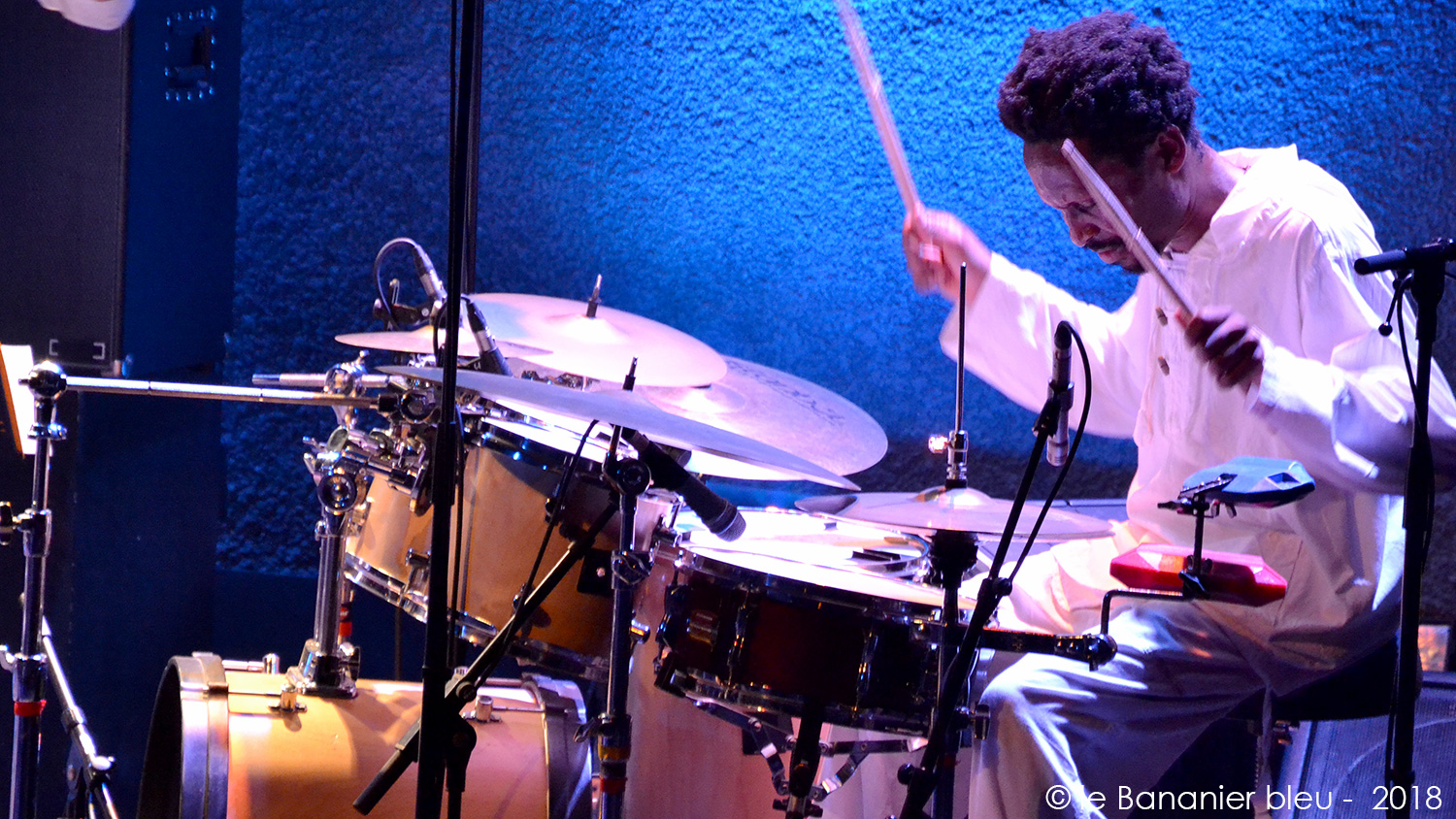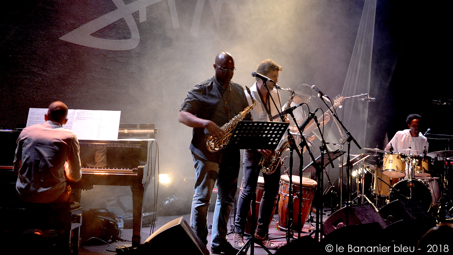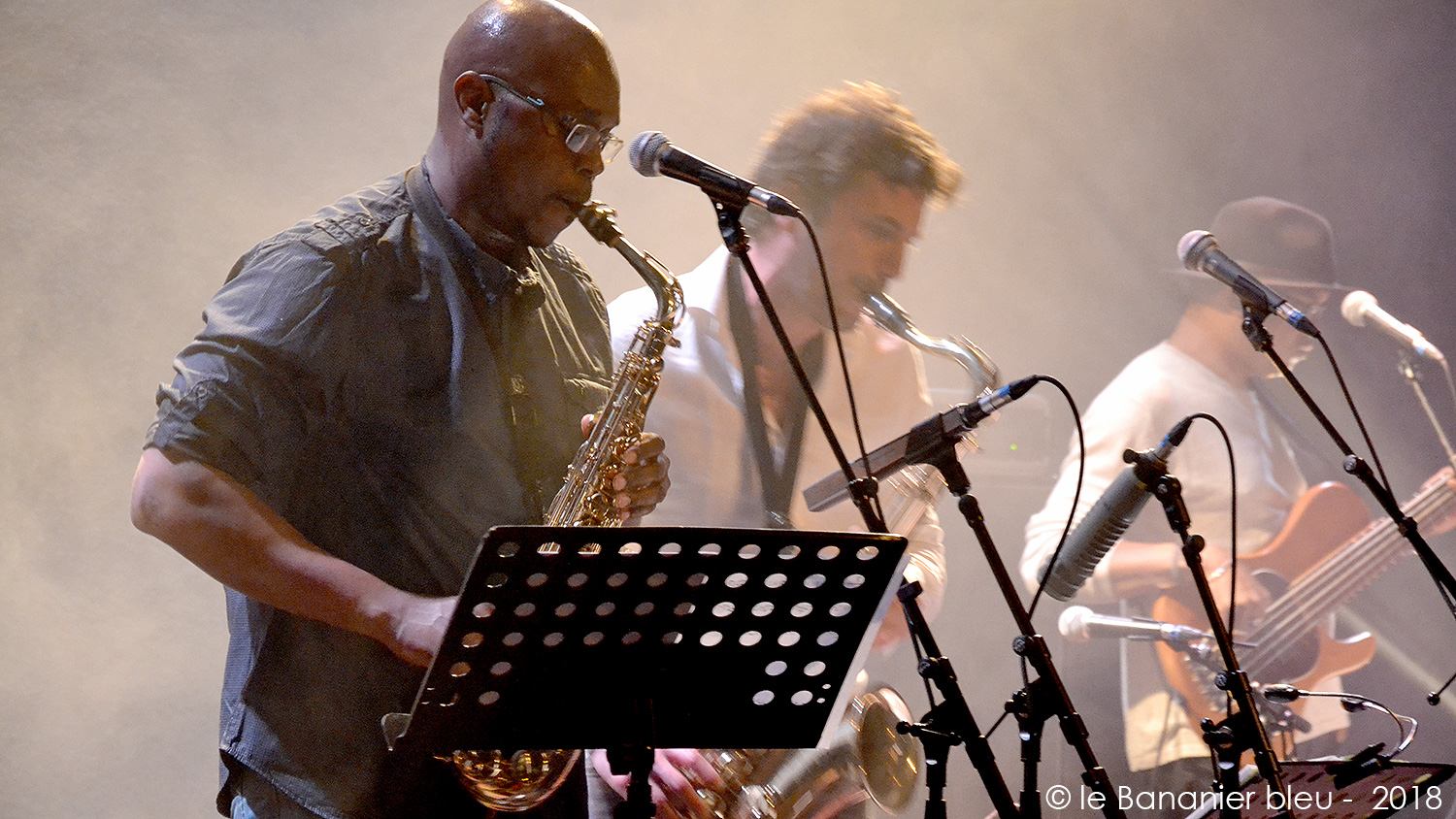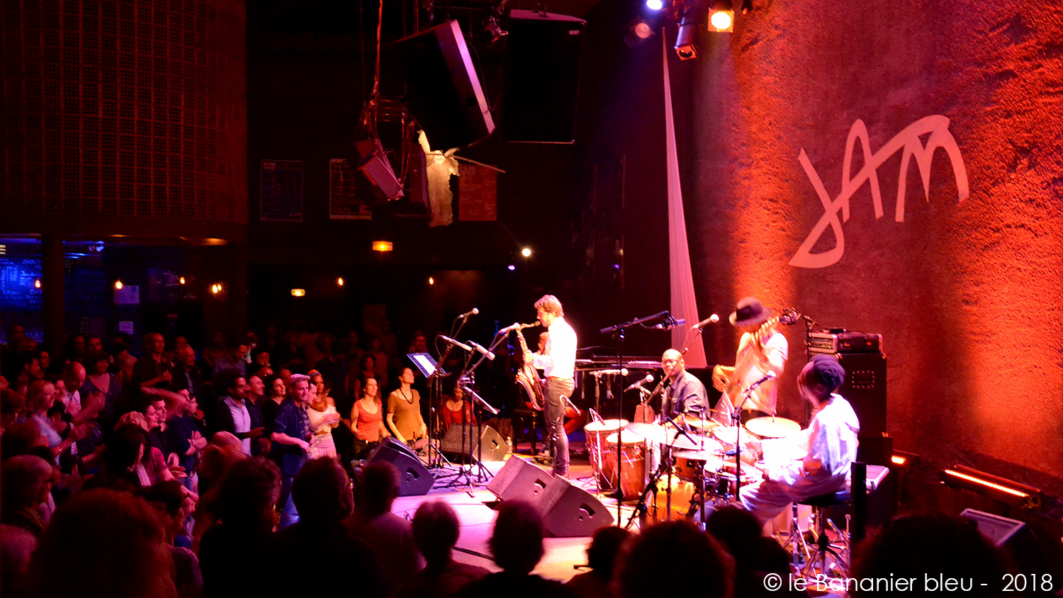Sonny Troupé est de nouveau sur la route avec son groupe, le Sonny Troupé quartet Add 2, pour présenter son album “Reflets Denses“. Hier soir, il a enflammé le JAM à Montpellier, invité dans le cadre des festivités du 40e anniversaire de Radio Clapas. Au JAM, Sonny est un peu à la maison, pour s’y produire régulièrement, sous son nom ou bien invité comme souvent par Franck Nicolas. Il bénéficie à ce titre à Montpellier d’un public fidèle qui encore une fois a été conquis par la musique et l’ambiance distillées par le groupe. Ce vendredi, il s’agissait donc de l’un des tous premiers concerts de cette nouvelle configuration de formation, avec Grégory Privat (pno), Raphaël Philibert (sax & ka), Thomas Koenig (sax & fl) et Mike Armoogum (b). Si on ne présente plus Mike et Grégory, complices depuis de nombreuses années, c’était l’occasion de découvrir les talents de Raphaël Philibert, élevé lui aussi à l’école Kimbol de Sainte-Anne, et qui à ce titre maîtrise aussi bien le saxophone que le ka, avec lequel il a donné à Sonny une formidable réplique en duo. Thomas Koenig est le plus récent des membres du groupe, et la facilité avec laquelle il a intégré les codes du gwoka force le respect. Au bout du compte, Sonny Troupé réussit une fois de plus son pari, et porte haut et fort les couleurs de la tradition guadeloupéenne du gwoka moderne et du jazz, une relecture dynamique, talentueuse, actuelle et chaleureuse. Quelques photos en fin d’article.