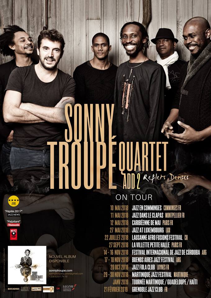 Sonny Troupé est en tournée avec son projet jusque début 2019, et une douzaine de dates sont déjà établies, en France et à l’étranger. D’autres – en particulier aux Antilles – sont en préparation. Restez donc à l’écoute ! Dès ce soir, ils feront chauffer le 1er étage du Baiser Salé (concert à 21h30), dans le cadre du festival des Caribéennes de Mai.