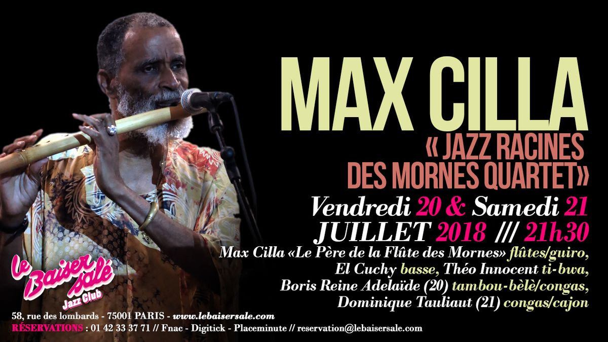 C’est une légende vivante qui se produira au Baiser Salé les 20 et 21 juillet prochains. Max Cilla, père de la flute des Mornes de Martinique revient pour deux dates au célèbre club parisien, après une première représentation lors de la dernière édition des Caribéennes de Mai. Alors qu’en Martinique, tout jeune déjà, il joue dans de petits orchestres locaux, sa carrière démarre lorsqu’il fait ses études à Paris, suite à la rencontre d’Archie Shepp qui l’invite à partager la scène du Chat qui Pêche. On est en 1967… De retour aux Antilles, il aura comme élève un certain Eugène Mona. Il reviendra d’ailleurs pour un concert hommage, avec Dédé Saint-Prix, en 1996, à la Cité de la Musique. Depuis, il réalise de nombreux disques axés autour de l’utilisation de cette flûte traditionnelle et a joué avec de nombreux musiciens d’horizons très différents : Roland Brival, David Murray, Alfredo Rodriguez, Bonga…