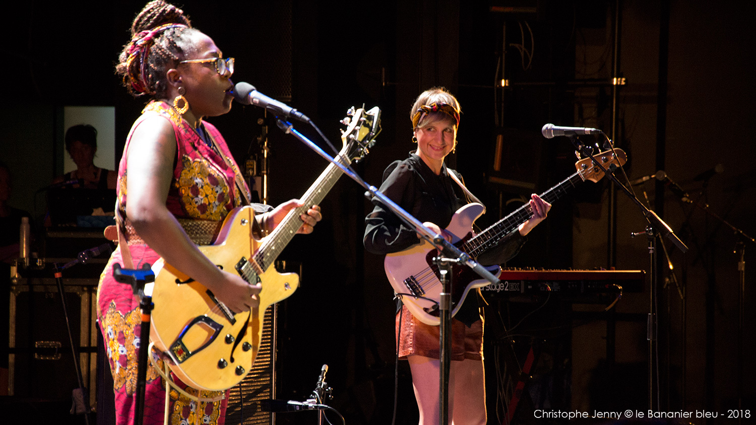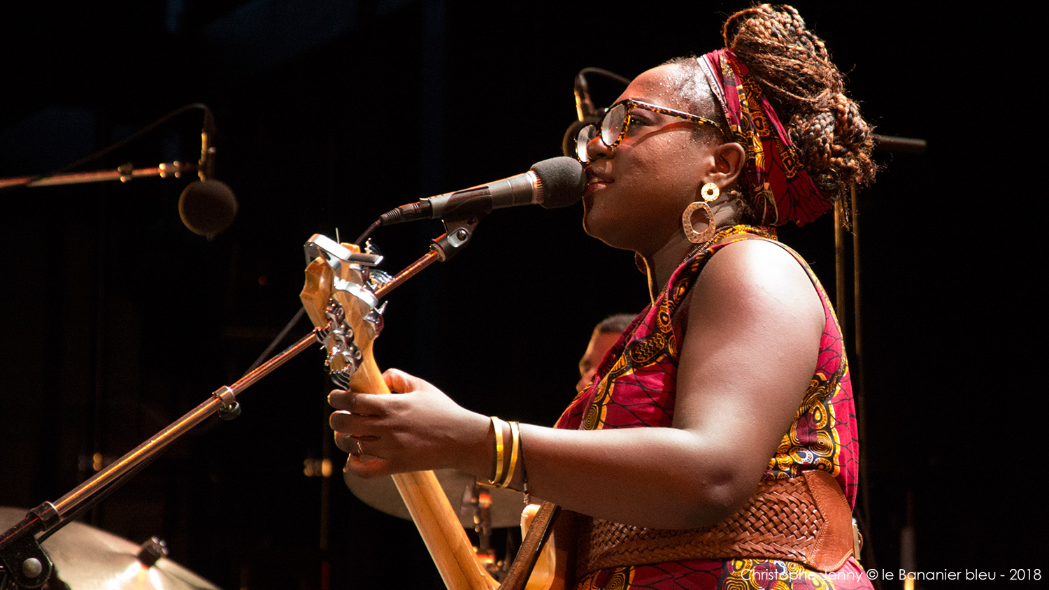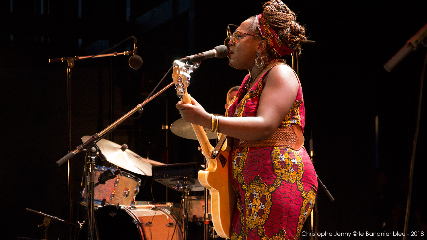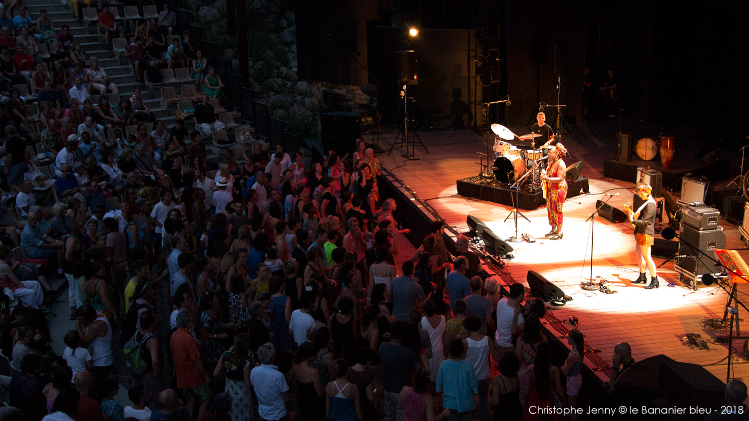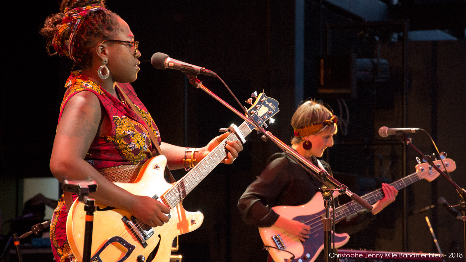 Cela faisait déjà quelques mois que j’attendais (impatiemment) l’occasion d’écouter Mélissa Laveaux. La chanteuse haïtienne est précédée d’une réputation qui grandit à vue d’œil ces derniers temps, et il était donc urgent de faire quelque chose. L’occasion vient de se présenter lors du concert de clôture du Festival Radio France Occitanie Montpellier 2018, et de la soirée FIP dont la tête d’affiche était Seun Kuti. Mais pour débuter la soirée, c’est Mélissa Laveaux qui ouvrait le bal sur la scène de l’amphithéâtre d’O. Pour l’occasion, l’avant-scène avait été démonté pour laisser place à la piscine, rapidement envahie par les danseurs. Et c’est en trio, guitare en bandoulière, que Mélissa Laveaux a donné le feu vert, accompagnée d’Élise Blanchard (b) et Martin Wangermée (dms). Je m’étais imposé de ne rien écouter au préalable pour laisser la surprise opérer. Objectif pleinement atteint avec ce bouillonnant folk rock caribéen qui déborde d’énergie. Mélissa chante en créole ses racines haïtiennes, mélange rythmes vaudous et rock, et invente une nouvelle déclinaison de la mizik rasin. Son chant peut être doux mais aussi puissant lorsqu’il faut dénoncer les injustices et les souffrances. « Les chanteuses haïtiennes sont rock cette année, parce qu’elles sont en colère, et qu’elles ont des choses à dire » me confie Mélissa, en clin d’œil au dernier album de Moonlight Benjamin dont nous avons récemment parlé ici. Sur scène, Mélissa reprend le répertoire de son dernier album, Radyo Siwèl, sorti chez No Format en début d’année. C’est une musique de combat, porteuse d’énergie positive et d’espoir, sous l’aile protectrice de Papa Legba. Et un disque à se procurer sans hésiter ! Ah, et au fait, Mélissa Laveaux et Moonlight Benjamin sont programmées toutes les deux ce dimanche au WOMAD UK. Au cas où…