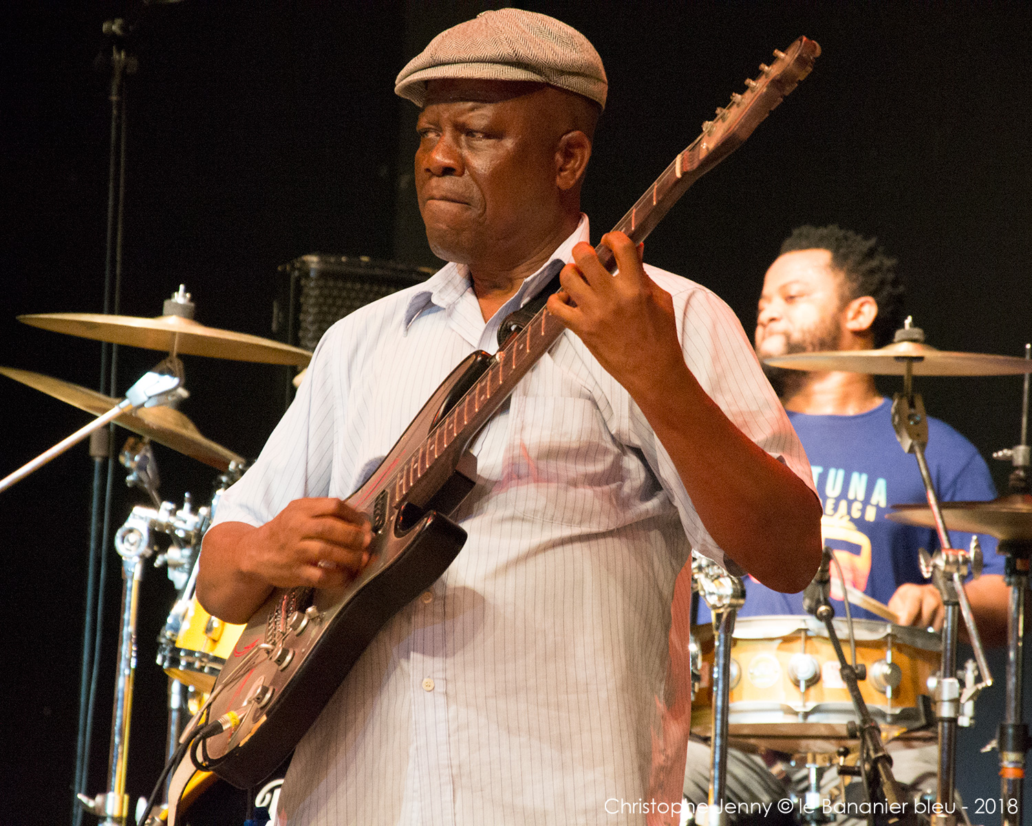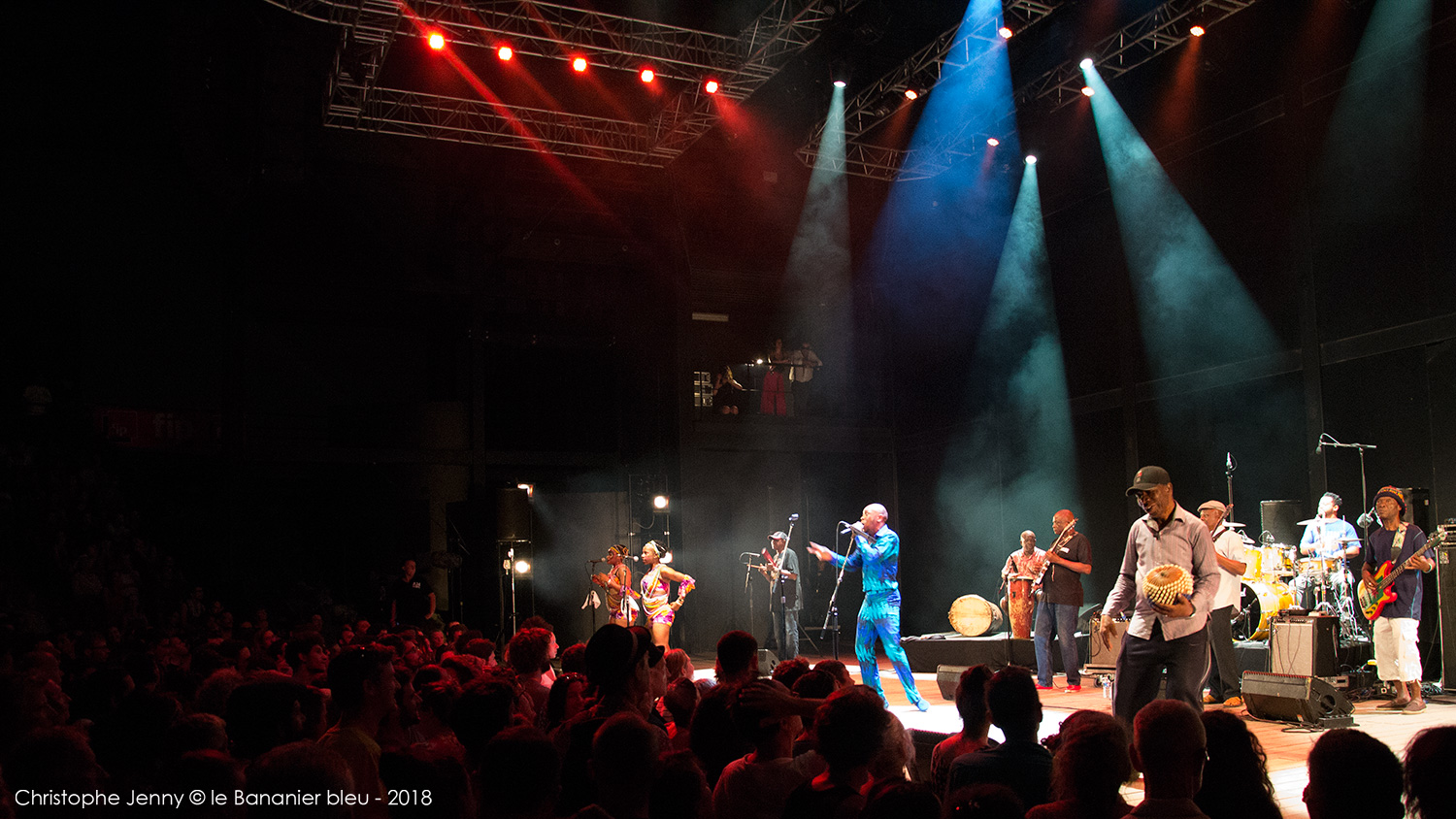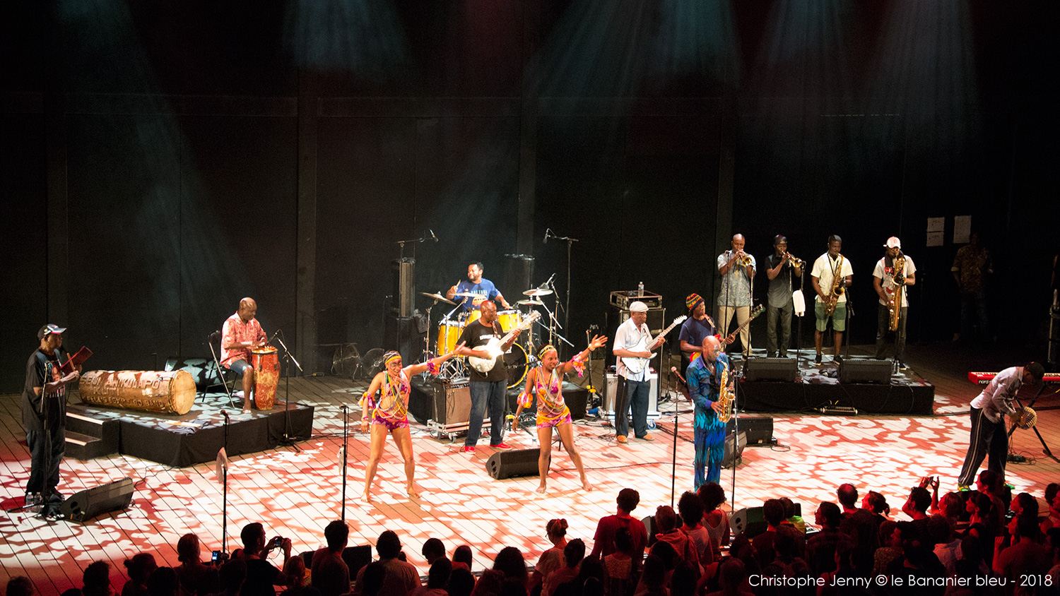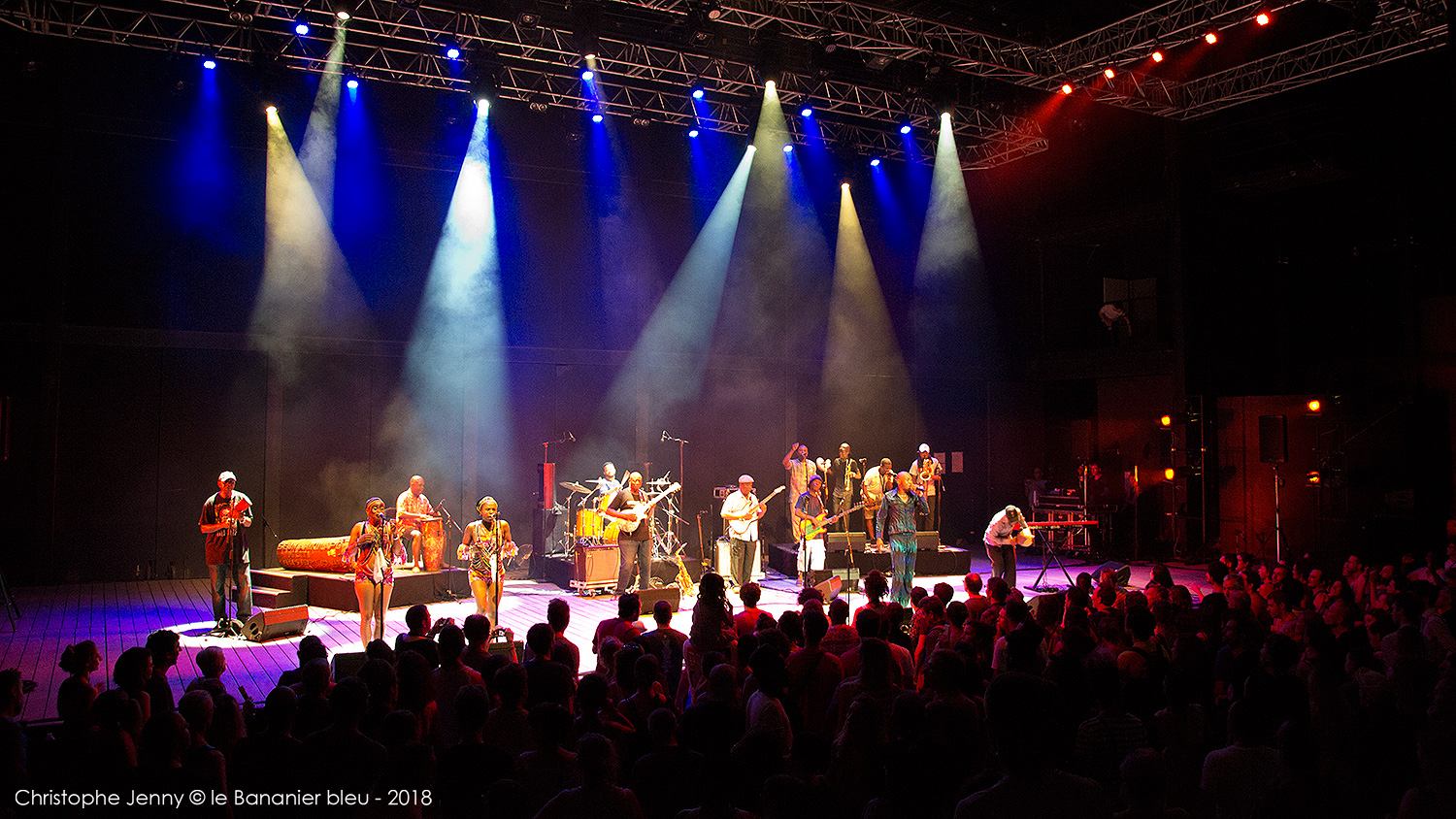 En clôture du Festival Radio France Occitanie Montpellier 2018, la soirée FIP s’achevait ce 27 juillet, avec le concert évènement de Seun Kuti & Egypt 80. Le plus jeune fils de Fela a pris possession de la scène avec les treize membres de l’orchestre mythique de son père, après un premier set de la chanteuse haïtienne Mélissa Laveaux qui avait donné le ton une heure plus tôt. Débauche d’afrobeat dès les premières notes, section de cuivres au millimètre, choristes danseuses inépuisables, le spectacle ravira le public déchainé pendant les deux heures à suivre. Seun Kuti vient présenter son dernier album, Black Times, sorti cette année chez Strut Records. Les messages politiques sont omniprésents, pour remettre l’Afrique au centre et s’indigner de l’absurdité du monde actuel. Seun Kuti fait le show, dirige à la baguette une formation à la précision chirurgicale, alterne le chant, le saxophone et le clavier, danse et harangue le public dans une enceinte où, entre la transe et la canicule, chaleur et moiteur n’ont rien à envier au fin fond des quartiers de Lagos. L’imperturbable section rythmique d’Egypt 80 enchaine sans ciller les tempos infernaux, tandis que sur le devant de la scène, les danseuses entrainent un public conquis. Sur quelques morceaux plus lents (African Dreams) on apprécie la force tranquille de cette formation qui appuie encore le message. Au bout d’une heure Seun Kuti n’a déjà plus de chemise, et le public en redemandera au point d’obtenir un bis amplement mérité en fin de concert. Très belle soirée donc, avec quelques photos à suivre.
