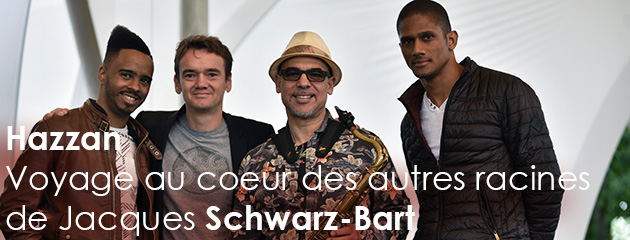 Les racines de Jacques Schwarz-Bart sont multiples et riches. Surtout, à parts égales, elles plongent dans deux diasporas aux histoires tourmentées, afro-caribéenne d’un côté et juive de l’autre, illustrées par chacun de ses parents, Simone et André, et à travers l’œuvre littéraire qu’ils ont produite. Si Jacques s’est toujours réclamé de ces deux identités, son œuvre musicale avait jusque-là plutôt illustré la part antillaise, à travers Soné Ka La, Abyss et plus récemment Jazz Racine Haïti. Avec Hazzan – le Cantor de la tradition juive – Jacques Schwarz-Bart nous entraine sur l’autre versant de son histoire, en mettant à l’honneur les mélodies traditionnelles de la liturgie juive comme terreau fertile propice à l’épanouissement d’un jazz coloré, entrainant, chaleureux et là encore métissé. A l’image du quartet – fidèle – qui l’accompagne ici, formé avec Grégory Privat, Stéphane Kerecki et Arnaud Dolmen. Hazzan nous entraine sur des voies qui nous semblent parfois familières, des airs qui souvent ont dépassé leur sphère d’origine pour perler dans une culture collective plus large, à l’image du très chantant Oseh Shalom. Le répertoire varié donne au quartet l’occasion d’alterner les pièces mélodiques – superbe Avinu Malkenu – et les morceaux de bravoure technique, où l’intensité du jeu de Jacques fait merveille. C’est évidemment un grand plaisir de retrouver aux côtés de Jacques les trois formidables musiciens qui l’accompagnent. Le répertoire de Hazzan et les arrangements de Jacques Schwarz-Bart donnent à Arnaud Dolmen et Grégory Privat l’occasion de confirmer s’il en était besoin, leur facilité d’adaptation à des univers musicaux éloignés de leurs racines mais désormais parfaitement appropriés. La richesse du drumming d’Arnaud s’illustre particulièrement dans l’audacieux Adon Olam, en duo nu avec le saxophoniste. Le jeu souple et le son rond de Stéphane Kerecki donnent à la musique une chaleur et une proximité rare. Enfin, le chant et la voix tout en finesse de David Linx s’invitent sur A Hot Ketana aux accents mêlés d’Orient et d’Europe. Hazzan est certainement l’un des meilleurs albums de Jacques Schwarz-Bart, un univers à la fois spirituel et rayonnant, dont la réussite est aussi en grande partie due à la proximité de ces quatre musiciens qui se pratiquent avec bonheur depuis plusieurs années.