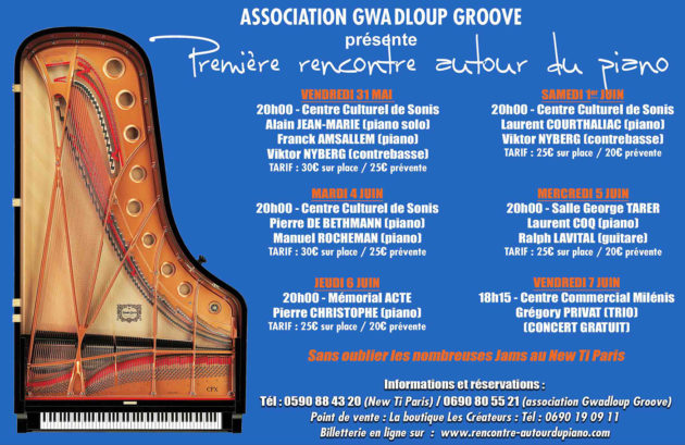 Le festival Première Rencontre autour du Piano revient sur les scènes de Guadeloupe pour la onzième année, du 31 mai au 7 juin prochain. Et encore une fois, la programmation concoctée allie qualité et originalité. Cette année, son initiateur, Steve Nuissier, s’est appuyé sur le récent projet At Barloyd’s du pianiste Laurent Courthaliac. Mais de quoi s’agit-il ? Laurent Courthaliac a hébergé chez lui, pendant plusieurs mois, un Steinway modèle D qui venait d’être restauré. Et plutôt que d’en profiter seul, il a eu l’idée de proposer à plusieurs de ses amis pianistes, de venir jouer dessus et de s’enregistrer. Le résultat ? Un coffret de neuf CD par ni plus ni moins que Alain Jean-Marie, Manuel Rocheman, Fred Nardin etc.