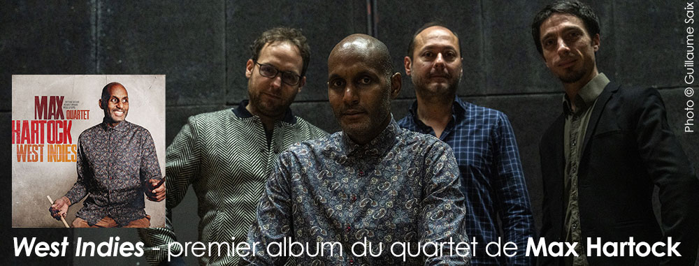 Résolument moderne, le jazz de Max Hartock est empreint d’énergie autant que de sens de la mélodie et de l’harmonie. Son premier album, West Indies, est enregistré en quartet, avec Virgile Lefèbvre (sax), Richard Turegano (pno) et Bertrand Beruard (cb). Le batteur martiniquais peint avec ses baguettes aussi bien qu’il imprime le groove. Ses compositions sont autant d’histoires au déroulé presque cinématographique, évocatrices parfois de paysages, souvent de moment de vie. Max Hartock est parfaitement servi par ses partenaires qui l’aident à colorier sa musique avec brio. Le piano de Richard Turegano, parfois soutenu par la contrebasse à l’archet de Bertrand Beruard, s’envole, revient, plane et nous emmène, en parfaite communion avec le saxophone de Virgile Lefèbvre. Il s’agit donc d’un véritable quartet, où chacun trouve sa part, se répond, s’accompagne, dialogue, propose, varie les climats, passant d’une délicate Anaïs à un West Indies percussif et volontaire ou bien au presque dansant En Mouvement. West Indies puise clairement son inspiration dans le jazz moderne européen, la musique contemporaine et la transe que l’on retrouve dans certaines traditions caribéennes. Ce premier album place haut la barre de l’exigence musicale, et passe cette barre avec de la marge et sans effort. Le quartet de Max Hartock, avec West Indies, nous offre un très bel album d’un jazz sans frontières de genres ou de styles, une invitation au voyage à dessiner soi-même dans sa tête, et surtout, à partager.