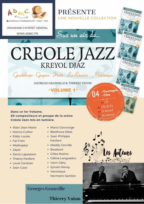 Georges Granville et Thierry Vaton poursuivent leur travail de publication de partitions de la musique créole. En 2014, les deux pianistes publiaient « Le piano dans la musique créole », un ouvrage de plus de 200 pages, partagé entre méthode d’apprentissage et retranscription de pianistes importants. Aujourd’hui, c’est un recueil de pièces de créole jazz, allant de la Réunion à la Guyane en passant par la Guadeloupe, la Martinique et Haïti, qui nous est proposé. Ce premier volume reprend ainsi des compositions de Marius Cultier, Mario Canonge, Alain Jean-Marie, Meddy Gerville ou encore Beethova Obas, à côté de titres d’interprètes de la jeune génération comme Véronique Herman Sambin, Céline Languedoc, Sylvain Ransy ou Yann Cléry. Au total, « Sur un air de… Kréyol Djaz » reprend les pièces de vingt compositeurs. Et afin de s’adapter aux différents instruments, l’ouvrage est proposé en quatre clés, Do, Fa, Si bémol et Mi bémol. Ajoutons que la préface a été rédigée par Tony Chasseur. « Sur un air de… Kréyol Djaz » est édité par l’ADMC, Association pour le Développement des Musiques Créoles, fondée par Thierry Vaton et Georges Granville, qui peut se charger de vous l’envoyer. Il suffit pour cela de remplir le bon de commande présent sur le site de l’association (http://admc.fr/). Une belle manière de mettre à profit le surplus de temps « à la maison » dont nous disposons ces temps-ci, et de découvrir la richesse et la diversité de ce répertoire.