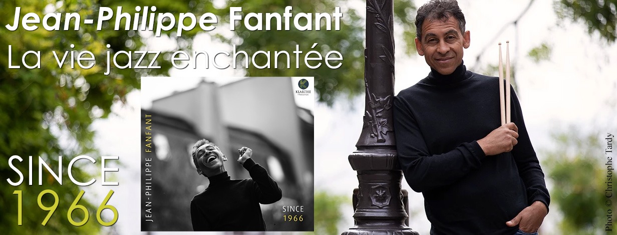 Le premier son est celui de la flute des mornes, soufflée par Max Mona, immédiatement suivi des harmonies africaines d’Olysa Zamati, l’ensemble mêlé dans la fusion afro-jazz que Jean-Philippe Fanfant nous propose ici. Et donc l’ensemble du tableau, de l’aire de jeu, est brossé d’entrée, les deux rives de l’Atlantique, africaine et caribéenne, et le jazz sous ses formes variées dans lequel il a baigné depuis l’enfance. Since 1966 en fait. Ce premier album sous son nom raconte donc une histoire, et les rencontres musicales qui l’ont façonnée, en France, en Guadeloupe, en Martinique… Since 1966 est un album riche et généreux, d’un jazz caribéen qui donne ce grand sourire que Jean-Philippe arbore si bien sur la superbe photo à l’ancienne qui illustre la couverture de l’album. Since 1966 est construit autour d’un petit noyau dur dont Thierry Vaton et Ludovic Louis sont les artisans, mais les invités sont forcément nombreux, sans qu’à aucun moment cela ne nuise à l’homogénéité de la musique. Mais au contraire en variant les couleurs avec bonheur. On passe de l’afro-jazz au rock steady puis au swing avant de revenir au gwoka (avec René Geoffroy) et au bèlè (avec Bago). Andy Narell apporte le parfum de Trinidad au Steel Pan, accompagné au piano par Janysett McPherson pour deux titres qui rappellent l’époque Sakésho. Les conques et la trompette de Franck Nicolas se mêlent aux percussions de Roger Raspail sur un Left to Right où Jean-Philippe ne craint pas d’inviter un deuxième batteur, son ami Manu Katché, pour dialoguer à bâtons non rompus. Thierry Fanfant, le grand frère et forcément l’une de ses inspirations majeures, représente la famille sur plusieurs titres, tandis qu’on retrouve d’autres bassistes stellaires au long de l’album : Guy N’Sangué, Stéphane Castry, Michel Alibo, Laurent Vernerey… L’énergie communicative de Jean-Philippe Fanfant transparait sans peine dans ces titres qu’il a tous composés (ou au moins co-composés), dans son jeu lumineux et éclatant, qui sait aussi se fondre tout en finesse sur la très jolie Ballad 4 Sassa. Je me souviens qu’il y a plusieurs années, lors d’une discussion sur un coin de table peu de temps après la sortie du très bel album Dounia de Mokhtar Samba (je vous le conseille si vous ne le connaissez pas), Jean-Philippe m’avait confié que c’était le genre de disque que tout batteur rêvait de faire. Et non seulement je le comprends, mais en plus à sa manière, il est pour moi évident que Since 1966 raconte une histoire au moins aussi belle.