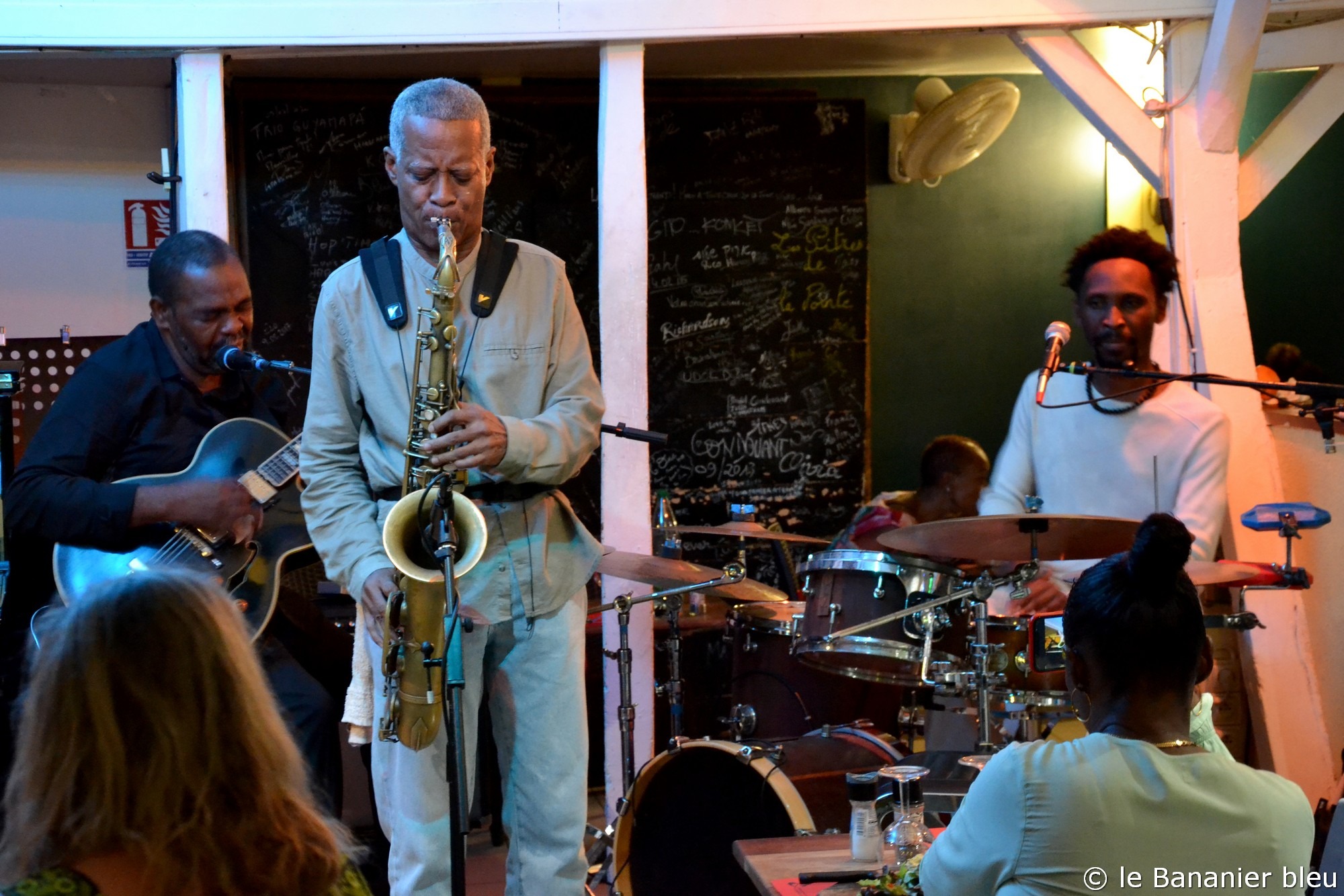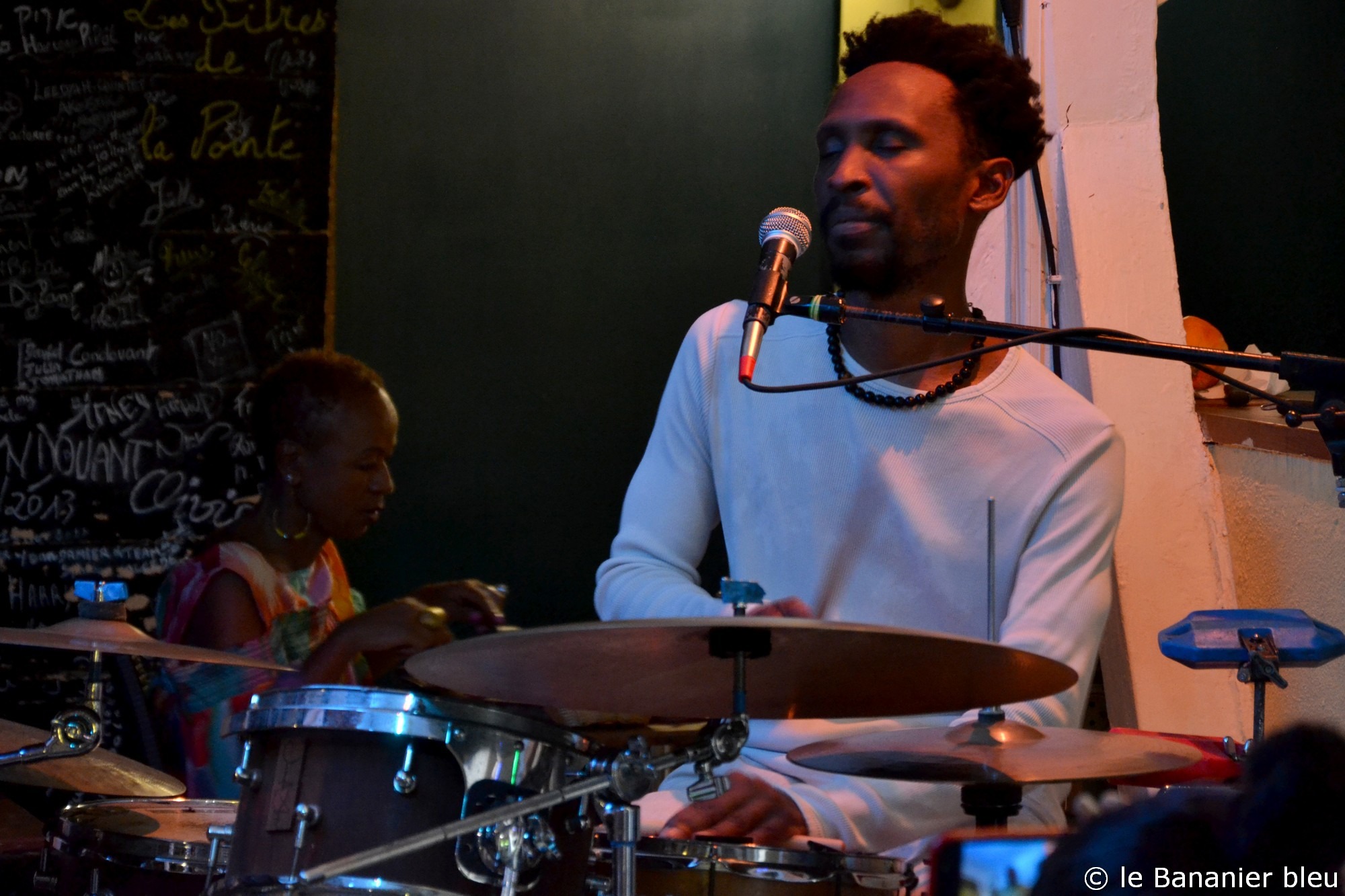 C’est désormais un rendez-vous traditionnel au New ‘Ti Paris. Christian Laviso et Sonny Troupé proposent leur formule Bokantaj autour du gwoka moderne et du gwoka jazz. Une première partie en duo, durant laquelle les deux complices échangent sans retenue, puis un ou deux invités viennent les rejoindre à tour de rôle pour la deuxième moitié du concert. Ce 11 juin, c’était donc l’édition Bokantaj #17 et les invités du jour étaient Roland Gallas et Jonathan Jurion. Et ces quatre là nous ont retourné la tête comme à leur habitude. Si le gwoka jazz n’a évidemment pas de secrets pour Christian Laviso et Sonny Troupé, on a particulièrement apprécié le placement toujours juste de Roland Gallas, et le traitement époustouflant du piano-ka de Jonathan, dont on sent tout le travail qu’il a fait auprès de Christian. Quelques photos, et puis woulo bravo !