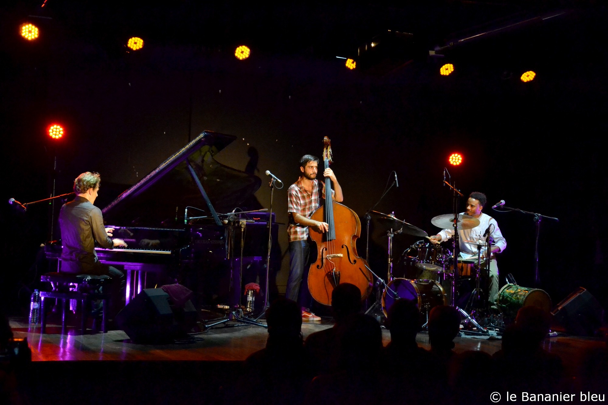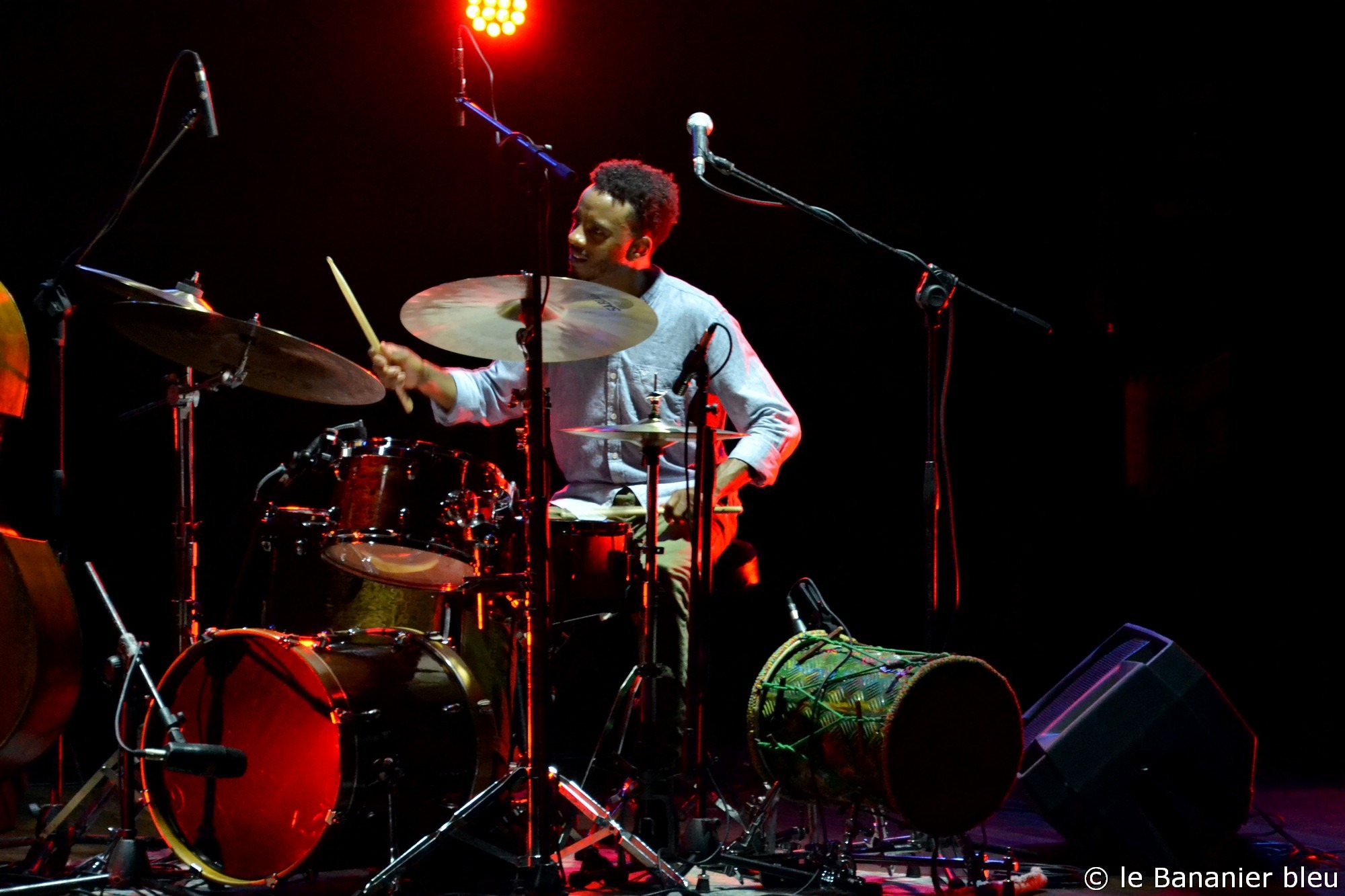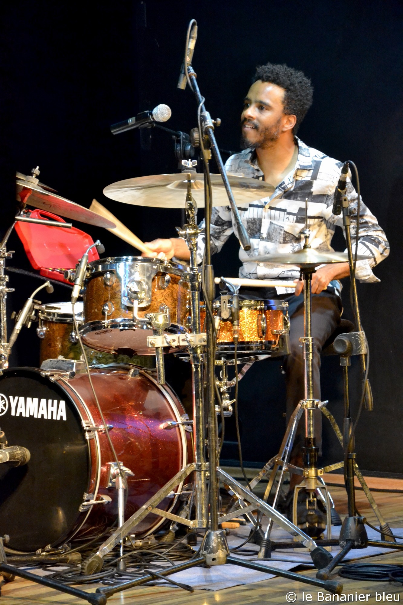 Arnaud Dolmen a souffert du même problème pour présenter à la salle George Tarer, le répertoire de son dernier album, Adjusting, salué par la critique, et qui lui a valu une nomination aux Victoires du Jazz 2022. C’est donc en trio, avec Leonardo Montana et Samuel F’Hima qu’ils ont régalé le public, explorant bien plus loin que sur disque, la richesse des compositions du batteur. Pour l’occasion, Arnaud jouait sur une batterie créée localement par Jenda Arts, aux Abymes, un jeune luthier à suivre et dont nous reparlerons certainement prochainement.