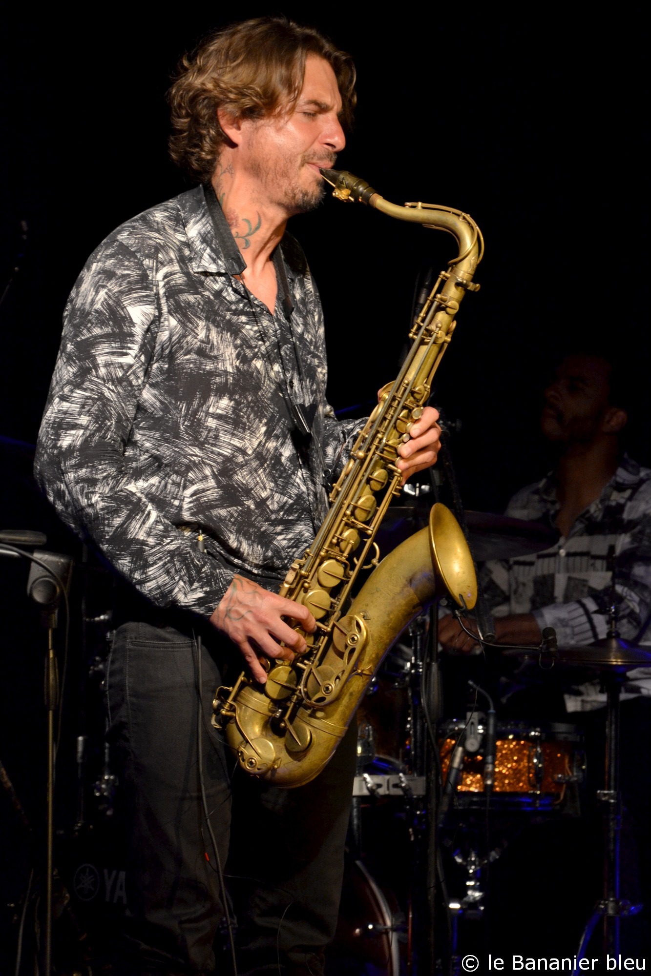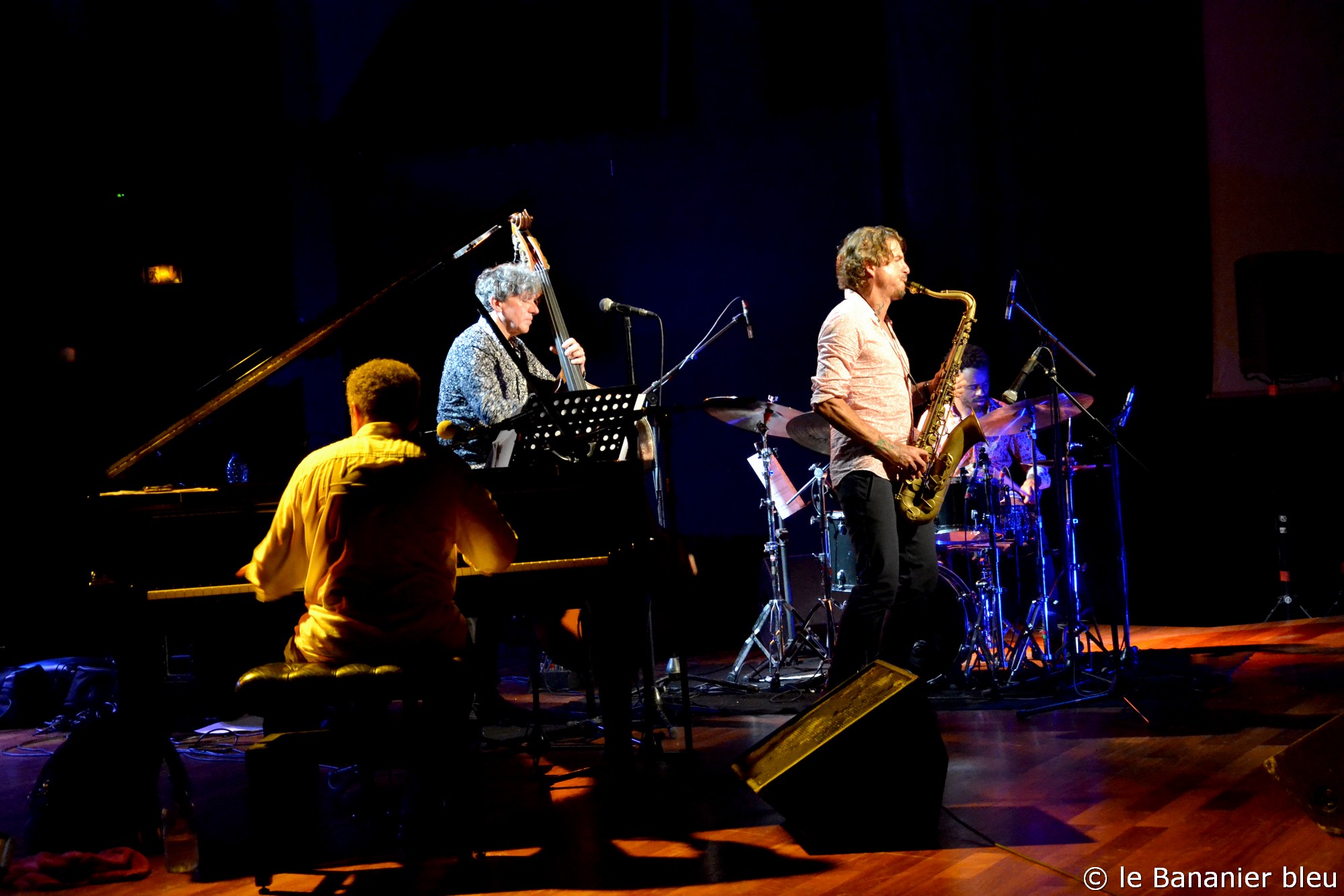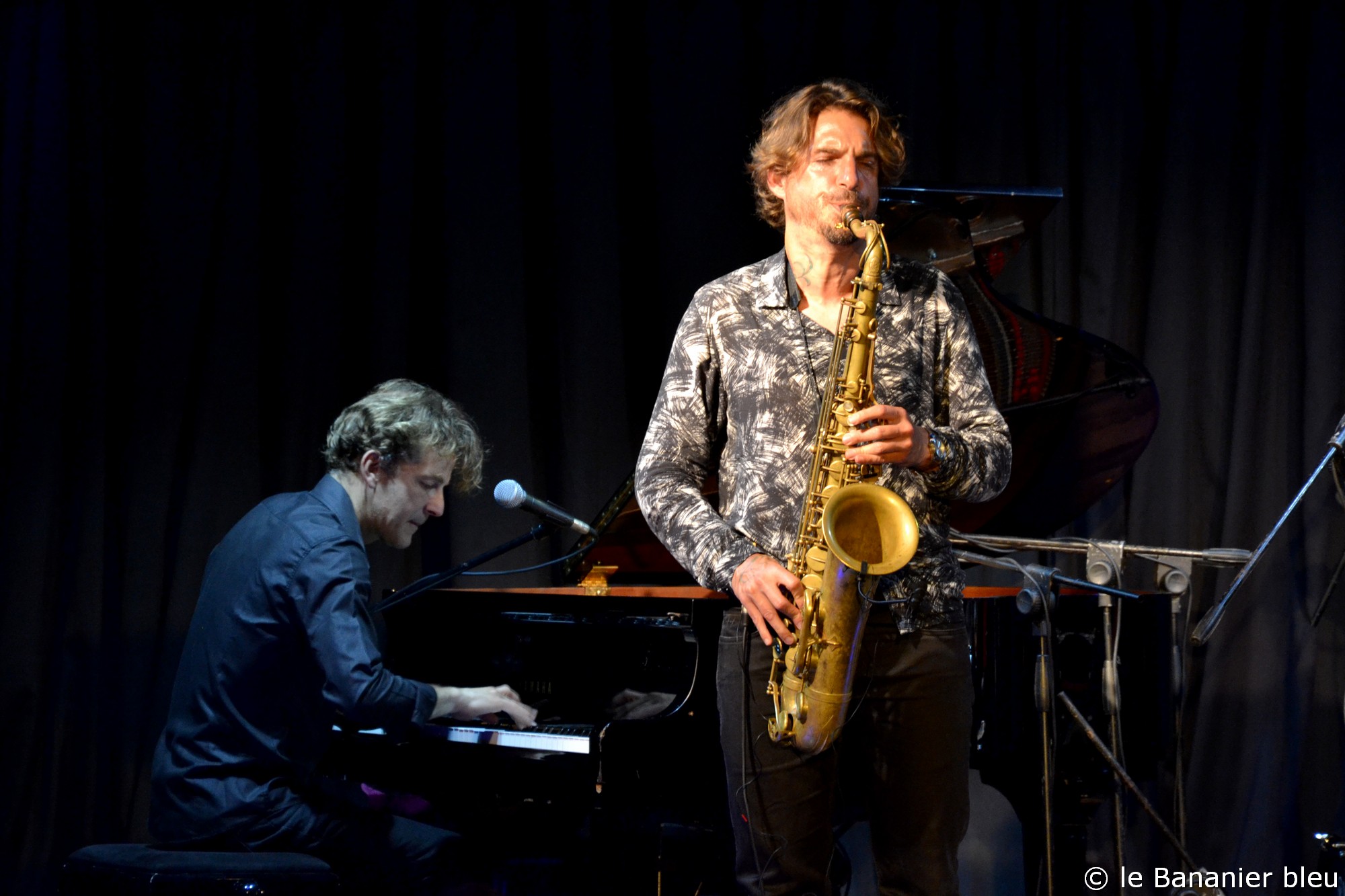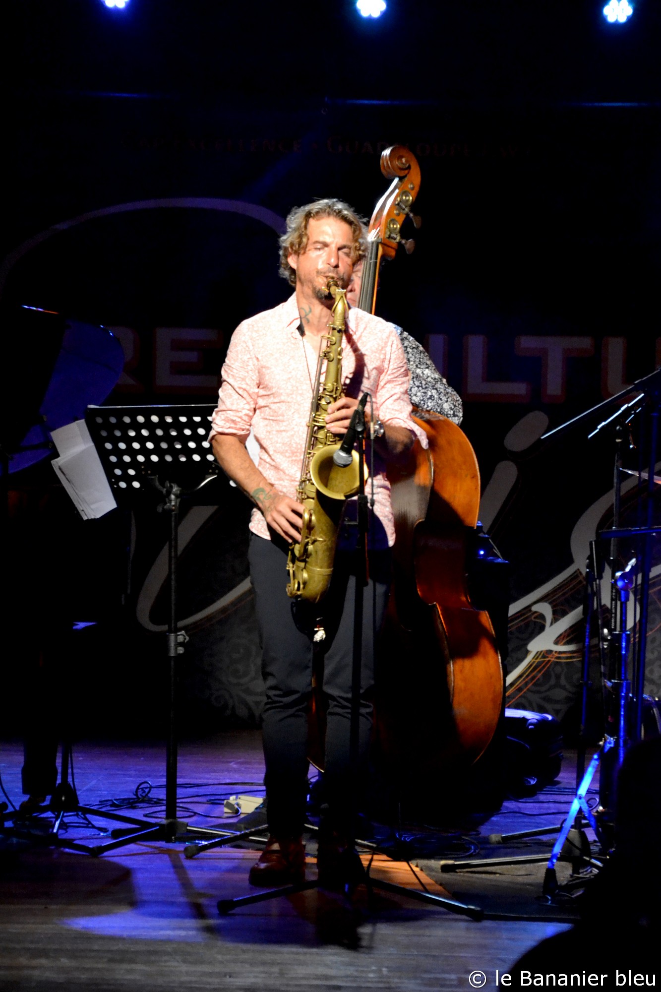 L’ouverture des hostilités s’est déroulée brillamment avec les talents conjugués d’Arnaud Dolmen et du pianiste Leonardo Montana. D’origine brésilienne, c’est surtout un complice de longue date d’Arnaud, doué d’une culture musicale rare. Avec le LeNo Duo, ces deux-là font des étincelles et nous emmènent loin, tant les mélanges d’influences qui les habitent sont riches. Leur complicité s’affiche ouvertement dans leurs échanges et le plaisir qu’ils ont à partager leur musique avec le public. La surprise du jour est venue de la participation sur deux titres du saxophoniste Samy Thiébault, qui les accompagnait en Guadeloupe. Samy vient d’achever une trilogie caribéenne qui lui a permis de s’immerger avec succès dans cette culture métissée, et il est également producteur du dernier album d’Arnaud avec son label Gaia Music Production.