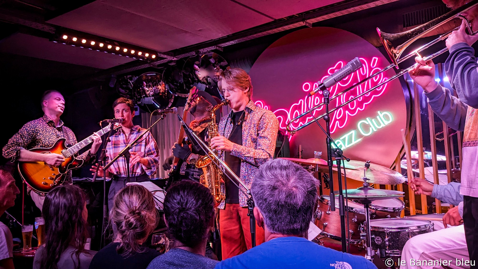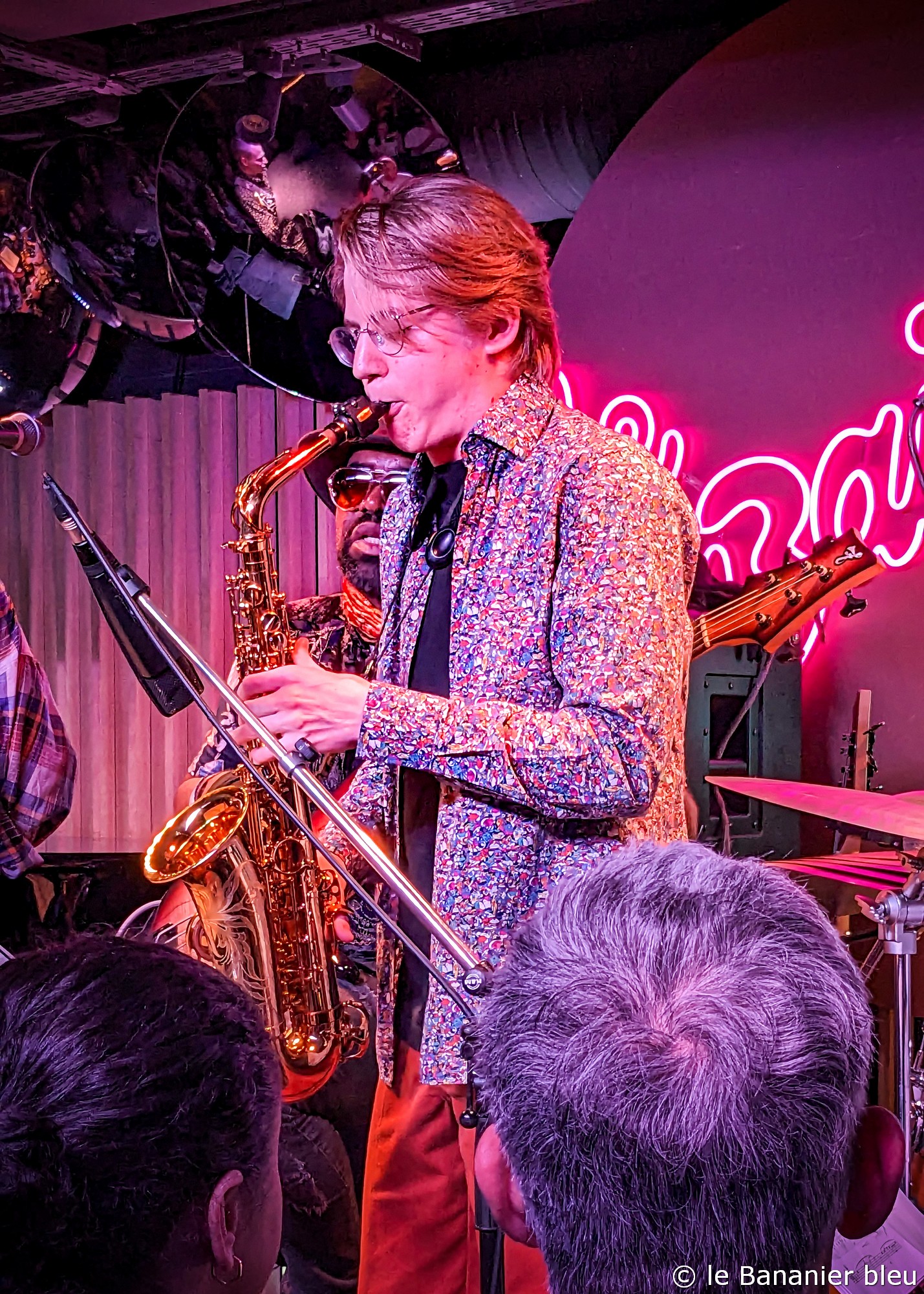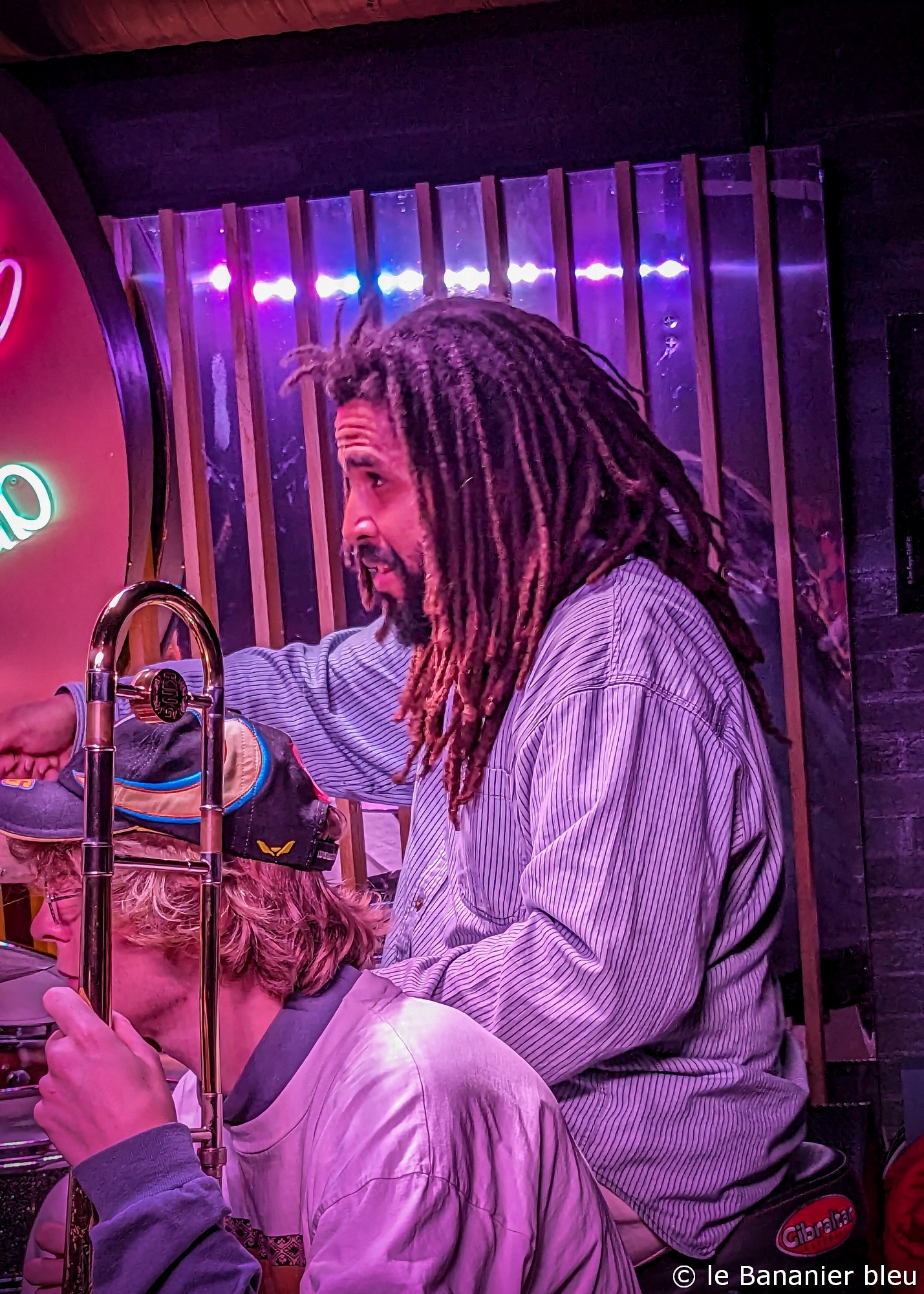 Donc Su La Také est revenu. Etienne a d’abord appelé la patronne, Cate Petit, qui fait partie intégrante de l’identité de Su La Také depuis l’origine, tant par la voix, la danse que par sa complicité. Cédric Baud fait aussi partie des incontournables du projet, quasiment depuis les débuts, et la richesse de son apport musical n’est plus à démontrer. Pour ces deux soirées au Baiser Salé, Etienne a fait monter à l’étage Tiss Rodriguez, pour tenir la batterie. Le batteur “maison” en grande forme, revient tout juste d’une résidence à la Villa Albertine de la Nouvelle Orléans. Et puis, Etienne a aussi le chic pour dénicher les jeunes talents que personne n’a encore entendus. Il y a vingt ans, il propulsait les frères Jim et John Grandcamp, découverts par hasard dans le métro. Cette fois-ci, c’est au CNSM – mais à travers les réseaux sociaux du moment, qu’il a repéré Darius Moglia (sax) et son frère Gaspard (trombone) qui à eux deux ne pèsent même pas quarante ans. Comme chacun sait, la valeur, n’attend pas le nombre des années. Démonstration éclatante.