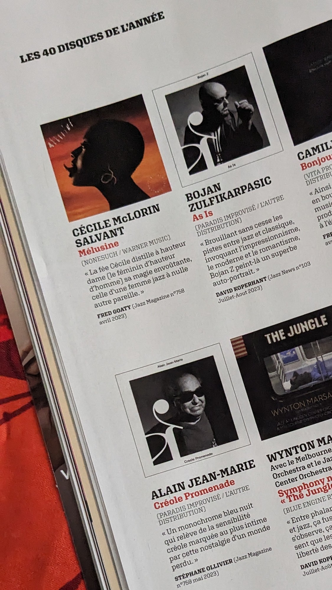Chers Jazz Magazine et Jazz News, il vous sera probablement difficile de reprendre tous ses noms pour le palmarès 2024, mais si vous manquez d’inspiration, je peux vous fournir une ou plusieurs listes alternatives du même acabit, sans aucune difficulté. N’hésitez pas !
