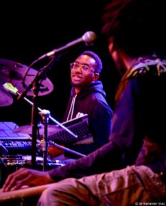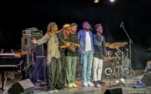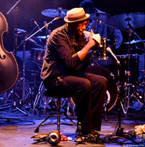 Placez sur une même scène Grégory Privat et son trio, formé avec Samuel F‘hima et Tilo Bertholo, et accompagné de Franck Nicolas et Sonny Troupé. Honnêtement, à quoi pouvez-vous vous attendre sinon à une soirée exceptionnelle ? Et bien mettez la barre encore un peu plus haut, et vous y êtes. Car voilà le spectacle que nous ont offert ces cinq musiciens, au théâtre Christian Liger à Nîmes, et introduit par un Stéphane Kochoyan conquis d’avance, avec raison. Tous se connaissent par cœur depuis maintenant des années, et cette réunion fusionnelle ajoute encore au talent de chacun. Grégory Privat présentait son tout nouvel album, Phoenix, sorti la veille, et composé dans la droite ligne de son précédent opus, Soley. Le répertoire se partageait d’ailleurs entre les deux. Le jazz prend ici des couleurs flamboyantes, résolument novatrices sous les traitements sonores que tous partagent, aussi bien sous le Moog de Grégory, que le groove basse de Samuel, les explosions « philcollinesques » (c’est son propre terme !) de Tilo Bertholo, et même les fulgurances de Franck. La puissance alterne avec les moments de grâce (Lotbò-A dédié à son grand-père), et Grégory passe des messages d’amour (Supernova) autant que de révolte comme dans l’explosif Chlordeconomy. On s’est laissé porter par l’introduction aquatique de Franck Nicolas aux conques, et Sonny, en maitre ka, a fait rugir son tambour, source inépuisable d’ébahissement, devant un auditoire médusé. Grégory Privat et son trio augmenté nous ont régalés, et nous ne pouvons que chaudement vous recommander de ne rater ses prestations sous aucun prétexte, si elles se présentent près de chez vous.