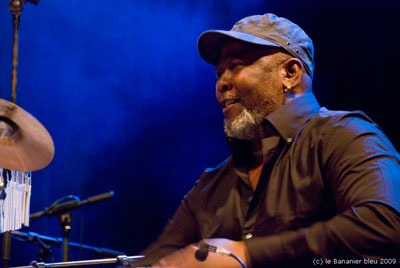 Arrivée à St Lucie ce 2 mai pour assister au Festival Jazz in the South. Atterrissage à Castries dans la torpeur de l’après-midi du petit aéroport. Nous traversons l’île montagneuse d’Est en Ouest jusqu’à Dennery puis descendons la côte Atlantique jusqu’à Vieux-Fort où nous sommes logés. A peine posés, re-départ quasi immédiat pour le Rudy John Beach Park, sur la plage de Laborie où se déroulent les concerts du soir. Nous descendons au bord de l’eau où la foule commence à s’amasser. Soleil couchant, mer calme, un gros porteur atterrit doucement derrière nous. Nous sommes accueillis par Yves Renard, organisateur du festival, pendant que le groupe local Tropix reprend avec brio quelques tubes actuels entre soul, funk et r’n’b. Beaucoup de musiciens sont déjà arrivés, et je repère Roger Raspail qui tourne autour de la scène. Il connait tout le monde, ce qui entraine serrages de main et embrassades en série – belle ambiance. Roger a grandi dans les hauteurs bananières de Capesterre et a appris à cultiver la banane en même temps que de jouer du ka. Plus tard il émigre à Pointe-à-Pitre avant de faire le grand saut jusqu’à Paris. Il y va pour la musique et y vit la vie à la fois si dure et pourtant irremplaçable des passionnés. Il côtoie le jazz de l’époque, fréquente le Dreher, fait de petits boulots et surtout persévère, jusqu’à arriver aujourd’hui à un équilibre précaire, et à une reconnaissance incontestable en tant que percussionniste, qui lui permet d’en vivre et de garder ce sourire inimitable qui le caractérise. Il est à St Lucia pour y présenter la création qu’il a monté avec Kendel Hippolyte lors de la dernière édition du festival Vibrations Caraïbes. Roger est aussi à l’affût de photos, son fidèle Pentax argentique vissé à l’œil : il traque avec avidité musiciens et spectateurs. C’est sa deuxième passion ! |