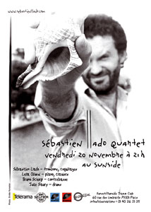 Et puis il y a l’autre versant de son projet, les explorations musicales de Sébastien. Basées sur l’utilisation des coquillages, elle mêlent des influences on ne peut plus diverses, et fréquemment électroniques. Sur le label Alter-Nativ (le label des musiques “invendables” !), il publie “Machination”, présenté ainsi : “Sebastien Llado […] s’est interessé au téléscopage de ces instruments naturels avec des outils issus de la musique électronique (boucleurs, samples, harmonizers etc…). Le résultat de cette expérimentation se trouve ici, sur ces 7 titres enregistrés live dans un lieu public (un bar). Il est intéressant de remarquer que le les gens passant dans la rue à ce moment-là se sont souvent arrêtés pour regarder “ce qui se passe”, formant un public hétéroclite mais disponible, curieux mais non captif, populaire mais exigeant.”