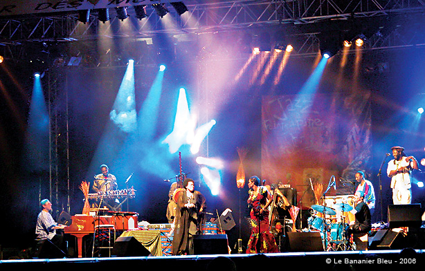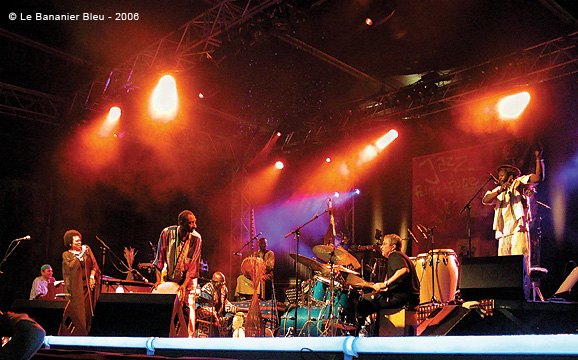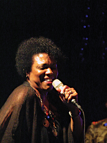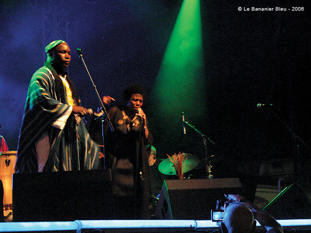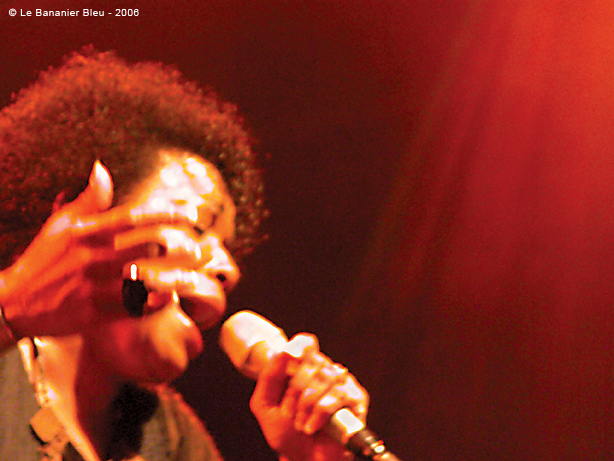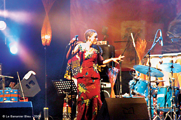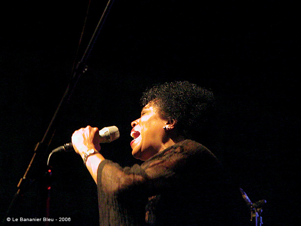 La tendance est aux projets, aux concepts, et parfois on en viendrait à se méfier de ce qui ressemble dans quelques cas à du pur marketing plutôt qu’à une vraie profession de foi. Car ici pour Dee Dee Bridgewater, c’est bien de cette dernière notion qu’il s’agit. Le retour à l’Afrique de Dee Dee s’est d’abord traduit par des voyages au Mali et une immersion dans la tradition et la musique du continent, avant de nous être rapporté sous la forme de cette fusion présentée ici, avec, autour de la chanteuse, un trio jazz « classique » – au rang duquel le formidable et fidèle contrebassiste Ira Coleman, et une formation de chanteurs et musiciens maliens absolument époustouflante. Citons quelques valeurs sûres, et tout d’abord Cheick Tidiane Seck, meneur d’hommes à l’énergie impressionnante – aux claviers comme aux percussions, et vieux routard de la fusion entre jazz et musique mandingue – et vous pouvez aller régulièrement vous en convaincre aux jam sessions du Baiser Salé, à consommer sans modération -, ainsi également que Baba Sissoko aux talking drums. Ce sont cependant peut-être les deux chanteurs qui m’ont le plus marqué : Kabiné Kouyaté, à la stature imposante et doué d’une voix extraordinaire, et Mamani Keita, chanteuse déjà largement reconnue dans le monde de la musique africaine, en particulier à travers les albums Electro Bamako, et qui vole parfois la vedette à Dee Dee par sa présence, son énergie… et sa voix bien sûr. Visiblement, Dee Dee est heureuse de partager cette fusion musicale sur scène, les duos, les combinaisons avec les percussionnistes, agrémentées de danses traditionnelles, s’enchainent. Dee Dee continue à chanter très jazz, mais vire parfois au soul-rock quand elle accompagne la transe musicale des tambours mandingues. Au total un spectacle riche et sans baisse de tension, même quand Dee Dee doit meubler sur scène entre deux ré-accordements de la kora… mais c’est presque naturel pour une professionnelle de cette envergure.