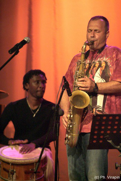 Jocelyn Ménard développe Gwanada, un concept de fusion caribéenne qui aboutira à un big band sur la place de la Victoire pour le Festival de Jazz 2007. En attendant, le groupe a tourné en Guadeloupe, au Centre Culturel Sonis, avec Sonny Troupé, Charly Chomereau-Lamotte, Raymond d’Huy, Raymond Grego et Dominique Bérose. Photos Philippe Virapin.
