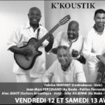 K’Koustik en concert au New Ti Paris Fabrice FANFANT (Contrebasse – Voix) Jean-Marc FERDINAND (Ka Boula – Petites Percussions – Voix ) Alex JABOT (Guitare Acoustique – Voix) Joby JULIENNE (Ka Makè – Petites Percussions – Voix) (Participations 5 euros / pers lorsqu’on dîne – 10 euros tapas & boire un verre)