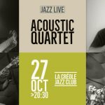 La Créole Jazz Club accueille le groupe Acoustic Quartet. Venez découvrir le répertoire de cette toute nouvelle formation, autour de compositions originales de style latino-caribéo-hispano-jazz. Bertrand de Kermadec : Guitare Ofélia Cruces : Guitare Patrice Hugues : Contrebasse Raymond Grégo : Batterie