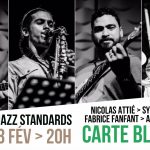 Retrouvez la nouvelle génération de jazzmen au cours d’une soirée autour des grands standards du jazz. Carte blanche à Nicolas Attié (guitare), Sylvain Joseph (sax), Fabrice Fanfant (basse) et Arnaud Dolmen (batterie).
