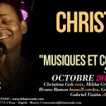 Dans le cadre du « Festival Jazz sur Seine » CHRISTINA GOH “MUSIQUES ET CONCEPT” Christina Goh voix, Mikka Grytviken guitares, Bruno Ramos basse/8 cordes, Gotham A. djembé, Gabriel Vizitiu claviers/accordéon Djembé, texte fort et musicalité intense au programme… Depuis plus de 10 ans, ses concerts sont peu communs. Christina Goh présente son nouveau répertoire au carrefour du […]