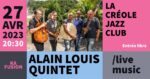 Description : Répertoire ka fusion, à la croisée du jazz et des rythmes traditionnels. Alain Louis / guitare Sylvain Joseph / sax Philippe Morbaye « Shouba » / basse Joseph Cazimir / batterie Kristof Garain / ka, percussions Accès gratuit. Récupérez votre billet d’accès sur https://www.billetweb.fr/pro/lacreolejazzclub.