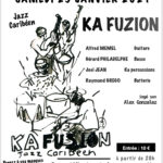 RETROUVAILLES AVEC DES MUSICIENS DE TALENTS Samedi 23 janvier 2021 KA FUZION (Jazz Caribéen) Alfred MEMEL…………. Guitare Gerard PHILADELPHE….. Basse Joel JEAN……………. Ka percussions Raymond GREGO….. Batterie Ingé son : Alexandre GONZALEZ A partir de 20h00