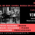 Le Trio 59° est un groupe de Jazz Guadeloupéen pétri de talents. Composé de Patrick FAISANS à la Basse, Jean-Marc DOUARED au Piano et Rudy GUILLAUME aux Percussions. 59° vous propose un voyage du swing au be-bop en passant par la samba et la bossa, le Tout dans des intonations Jazz Caribéen. Tarif 25 € […]