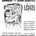 ZÉPICES – Brésil, Caraïbe, Cap Vert Un voyage en Musique du Cap-Vert au Brésil en passant par la Caraïbe ! Un succulent mélange épicé, concocté avec des morceaux rythmés, relevés avec chaleur et mijotés dans une belle sauce caribéenne ! Au croisement des univers de Césaria Evora, Djavan, Mayra Andrade, Henri Salvador… Feat. Lara Mauriol […]